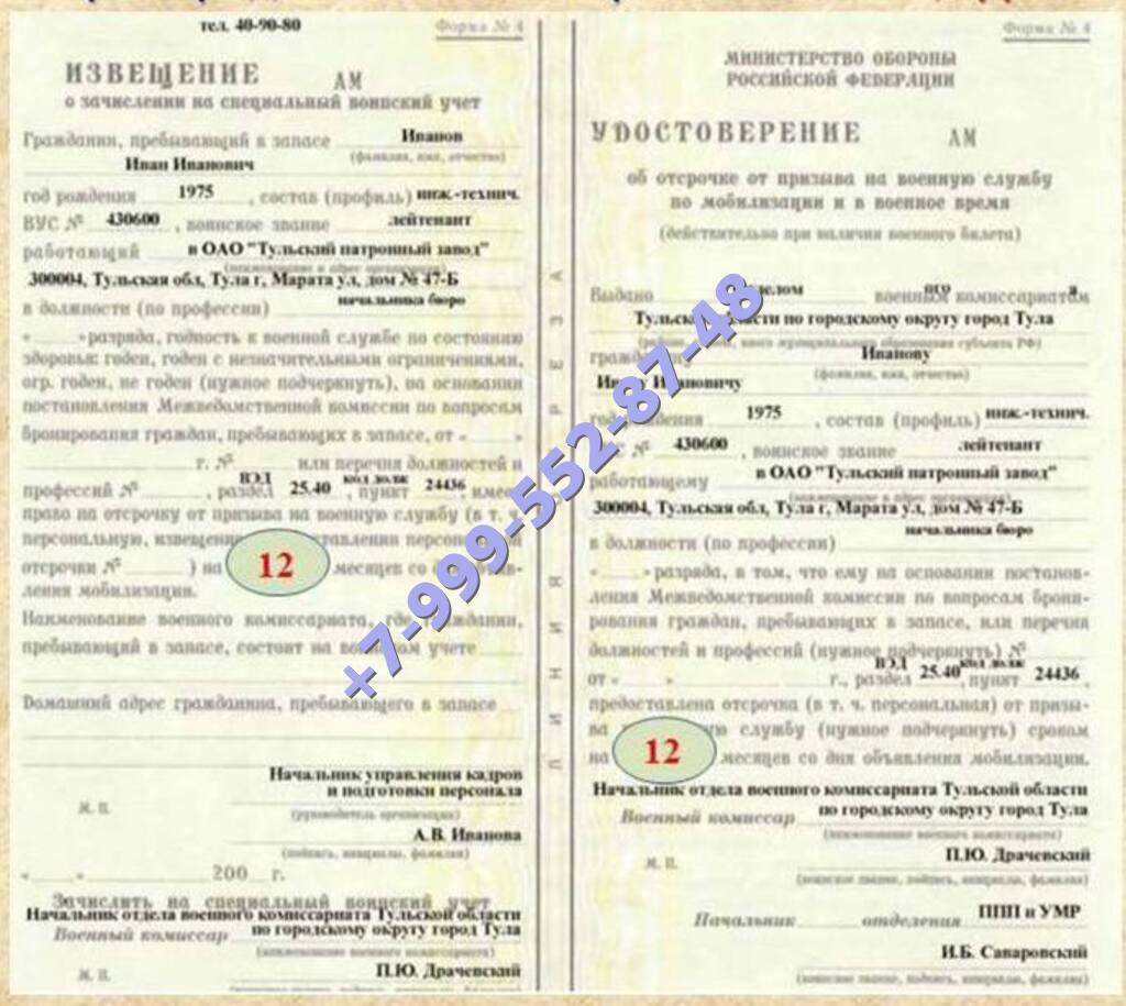 Наша компания работает в этом направлении уже не первый год. Сегодня оформить удостоверение об отсрочке на военную службу быстро не составит особого труда. Буквально через два дня нужный документ будет у вас на руках.